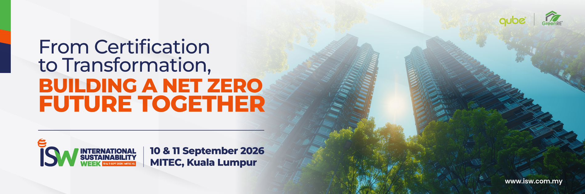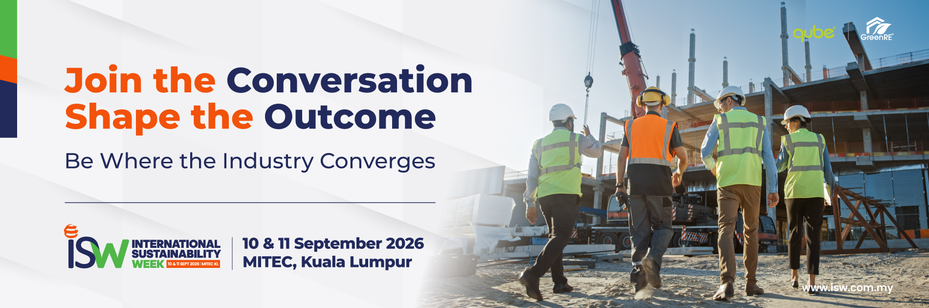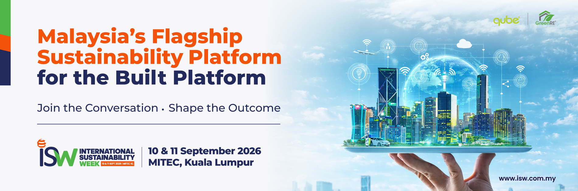 Organised through a strategic partnership between GreenRE Sdn Bhd and Qube Integrated Malaysia, ISW 2026 brings together decision-makers across government, industry and finance to support informed decision-making, cross-sector collaboration and the practical deployment of sustainability solutions with regional and international relevance.